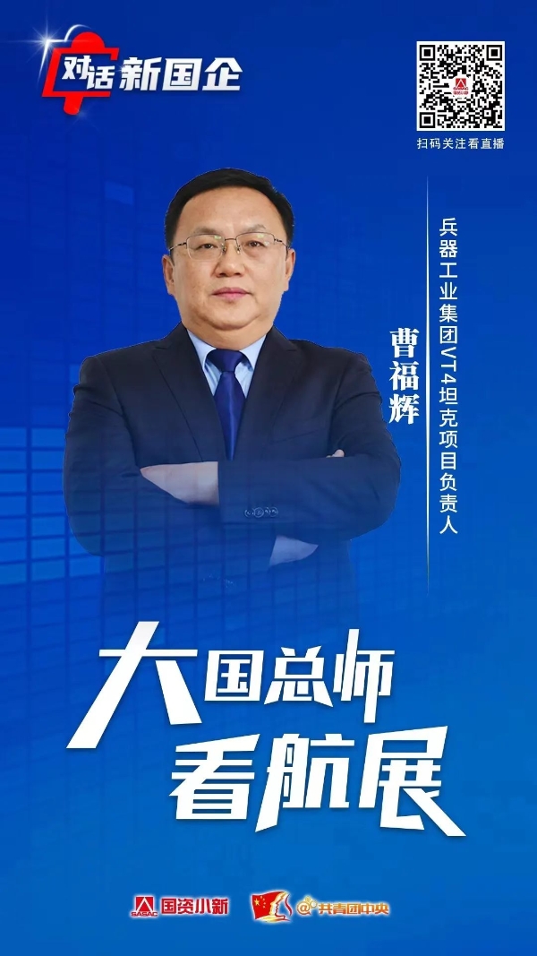 11月8日,國務(wù)院國資委新聞中心聯(lián)合共青團(tuán)中央宣傳部共同推出“對(duì)話新國企·大國總師看航展”系列訪談節(jié)目。中國兵器工業(yè)集團(tuán)一機(jī)集團(tuán)副總經(jīng)理、VT-4坦克項(xiàng)目負(fù)責(zé)人曹福輝作為訪談嘉賓,接受視頻連線采訪,介紹了兵器工業(yè)集團(tuán)有關(guān)參展情況,并就VT-4坦克的最新研發(fā)成果和地面作戰(zhàn)裝備體系解決方案等進(jìn)行了介紹。